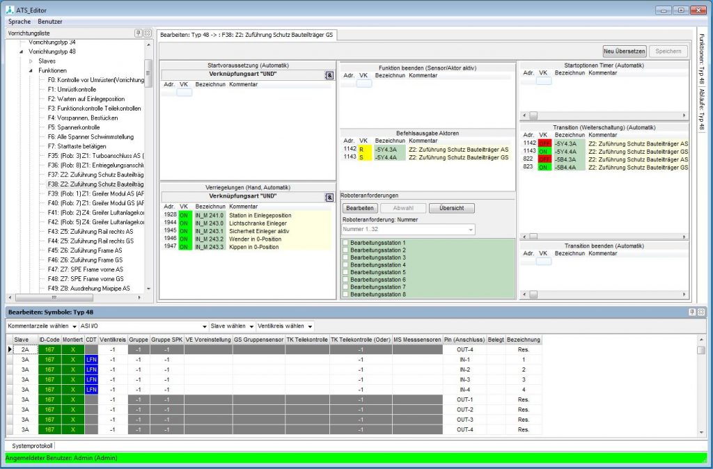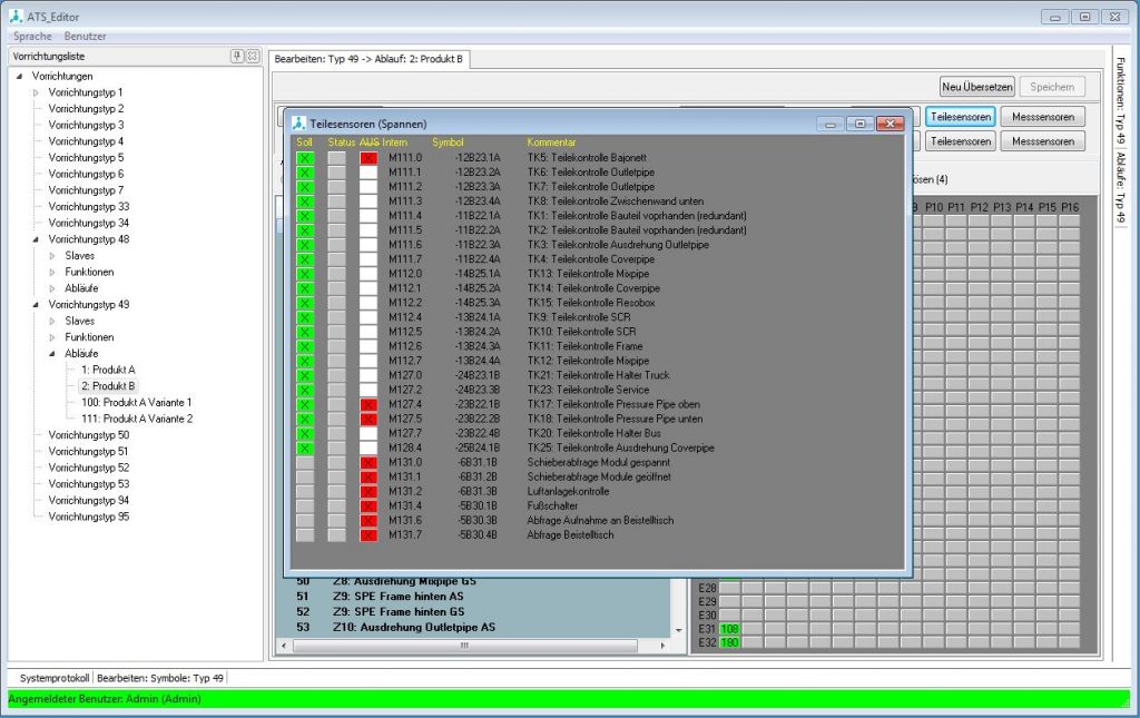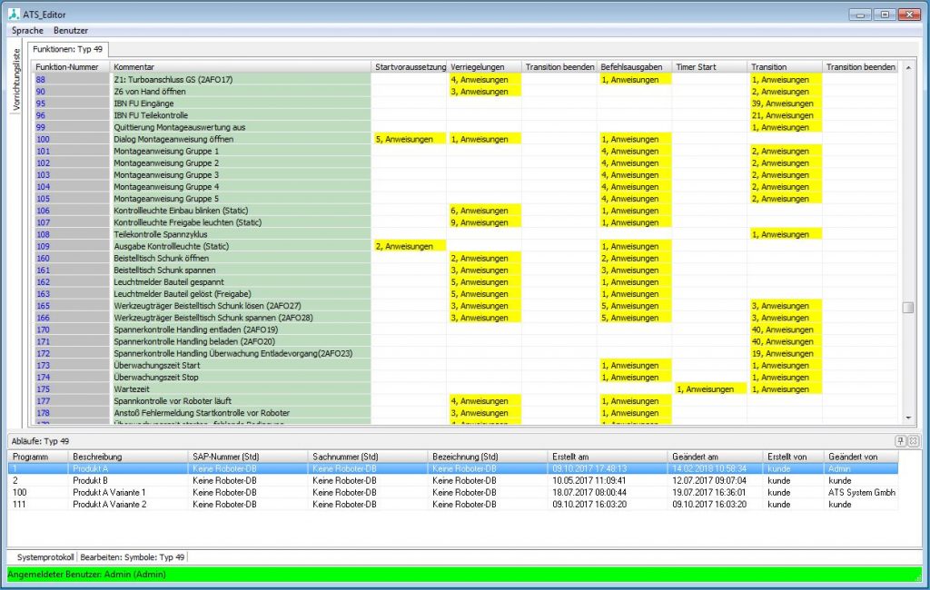 Das ATS-System hat es geschafft die komplexen Abläufe einer SPS-getriebenen Serienfertigung mit vielen Rüstvorgängen für eine Vielzahl von verschiedenen Produkten für einen Betrieb aus Softwaresicht beherrschbar zu machen. Die Software verleiht dem produzierenden Betrieb ein hohes Maß an Flexibilität und versetzt den Betreiber in die Lage Standardprozesse wie das Einrichten und Parametrieren einer neuen Vorrichtung und deren Anpassung selbst durchzuführen ohne einen SPS-Programmierer in Anspruch nehmen zu müssen. Auch kann das Umrüsten einer Anlage auf ein anderes Produkt schnell und kosteneffizient durchgeführt werden und sichert somit eine hohe Auslastung der betreffenden Anlagen. Ein weiterer Vorteil ist die vergleichsweise einfache Handhabung mittels der Benutzeroberfläche, die lediglich einer Einführung bedarf. In der Weiterentwicklung der Benutzeroberfläche ist es das Ziel, die Software noch intuitiver aufzubauen um eine noch höhere Effizienz und Akzeptanz bei der Bedienung zu erreichen und Softwareeinführungen oder deren Änderungen zu reduzieren. Die Steuerungssoftware der ATS System GmbH befindet sich bereits großflächig bei einem internationalen Hersteller von Abgassystem im produktiven Einsatz. Bis zum heutigen Tag wurden mehr als 300 Anlagen mit dem System ausgerüstet.