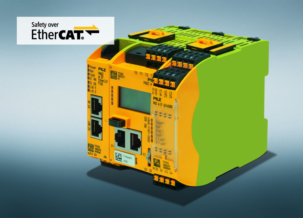 Die sichere Kleinsteuerung Pnozmulti 2 kommuniziert über Ethercat in Kombination mit Safety-over-Ethercat (FSoE). Sie überträgt sowohl steuerungs- als auch sicherheitsrelevante Informationen über ein gemeinsames Kabel. Dadurch lassen sich sicherheitsrelevante Anlagenstrukturen einfacher anbinden und Infrastrukturen sicher vernetzen – etwa mit sicheren Radarsensoren wie Psenradar oder sicherer Antriebstechnik PMC, beide von Pilz. Fungiert die Pnozmulti 2 als FSoE-MainInstance, sind umfassende Safe-Motion-Anwendungen realisierbar. FSoE-fähige Sensoren und Aktoren lassen sich dann unkompliziert in das Netzwerk integrieren.