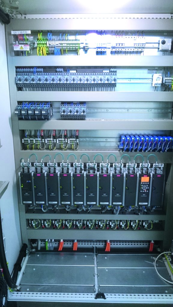 Wichtigstes Kriterium des Auftraggebers war der Faktor Zeit. Denn schließlich müssen die Kunden – überwiegend Discounter – just in time beliefert werden. Mit der Idee, den Schaltschrank ins Technikgeschoss zu verlegen, eröffnete sich die Möglichkeit, umfangreiche Vorarbeiten durchzuführen – im Stockwerk unter der laufenden Produktion. Den Umbau kleinerer Anlagen oder besonders umfangreiche Serviceaufträge führt der Maschinenbauer normalerweise am Stammsitz Schwäbisch Hall durch. In diesem Fall hätten allein schon die Auf- und Abbauarbeiten der Maschine zu viel Zeit gekostet. Dennoch wurde möglichst viel bereits extern vorbereitet, u.a. der erste Aufbau der Elektrik mit Komponenten wie Servomotoren und Sensoren zusammen mit dem neu eingerichteten Schaltschrank und der neuen Software. Lediglich die Mechanik, die sich bei diesem Projekt in gutem Zustand zeigte, blieb außen vor. Damit war ein Teil der Anlage bereit für Simulationen. „Mehr als 50 Prozent der Anlage konnten wir auf diese Weise prüfen“, sagt Optima-Mitarbeiter Stefan Burk, der Milcafea im Service betreut. Denn Fehler können immer passieren, sowohl in der Konstruktion, in der Software und auch beim Verdrahten. Kompliziert und zeitaufwändig wird es allerdings, wenn solche Fehler erst bei der Inbetriebnahme vor Ort bemerkt werden. Sogar die Tendenzsteuerung lässt sich per Simulation prüfen. Stellt die Kontrollwaage eine (fingierte) Überfüllung fest, muss der Servomotor des Dosierers seine Drehzahl reduzieren. Gleichzeitig wurden noch kleine Änderungen wie Edelstahlgehäuse am Füller vorbereitet, die heute Standard sind. Teilweise parallel dazu starteten die Vorbereitungen vor Ort beim Kunden. Im Technikgeschoss wurden Durchbrüche geschaffen und Kabelkanäle gelegt. Mit dem Stilllegen der Maschine wurde es dann vollends ernst – die Zeit lief. Die alte Elektrik wurde ausgeräumt, die Maschine zerlegt, die vorbereiteten Kabelbäume installiert und angeschlossen. Für den kompletten Aufbau waren zehn Tage einkalkuliert, in denen vom HMI bis hin zu den Linienanschlüssen nach der Kontrollwaage alles für die Wiederinbetriebnahme vorbereitet wurde. Nach weiteren drei Tagen für die Inbetriebnahme lief die Anlage wie vorgesehen an.