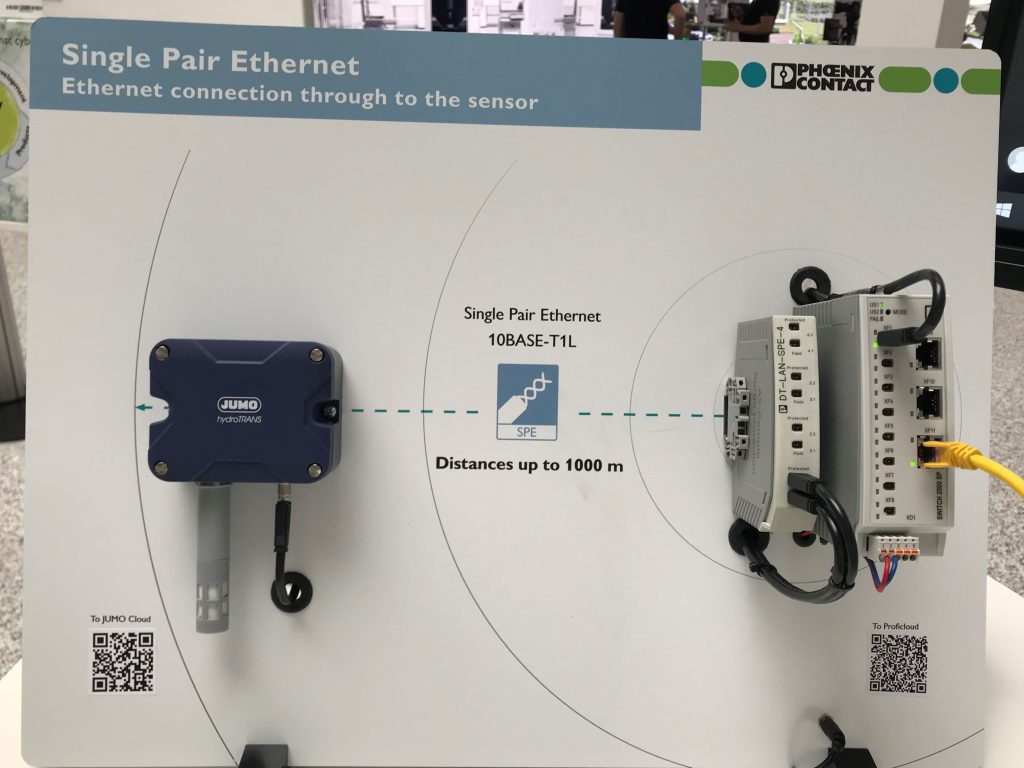 Die Jumo-Unternehmensgruppe aus Fulda hat erstmalig die Möglichkeiten der SPE-Technologie für die direkte Ethernet-Einbindung aufgegriffen und in neuen Sensorprodukten umgesetzt. Als einer der führenden Hersteller im Bereich der industriellen Sensor- und Automatisierungstechnik beschäftigt Jumo international mehr als 2400 Mitarbeiter. Das innovative Produktprogramm umfasst die gesamte Messkette von Sensoren bis zu Automatisierungslösungen für die Messgrößen Temperatur, Druck, Flüssigkeitsanalyse, Durchfluss, Füllstand und Feuchte. Die Sensoren werden weltweit unter anderem im Maschinen- und Anlagenbau, in der Heizungs- und Klimatechnik, der Lebensmittel- und Getränkeindustrie, bei erneuerbaren Energien sowie in der Wasser- und Abwasserwirtschaft eingesetzt.