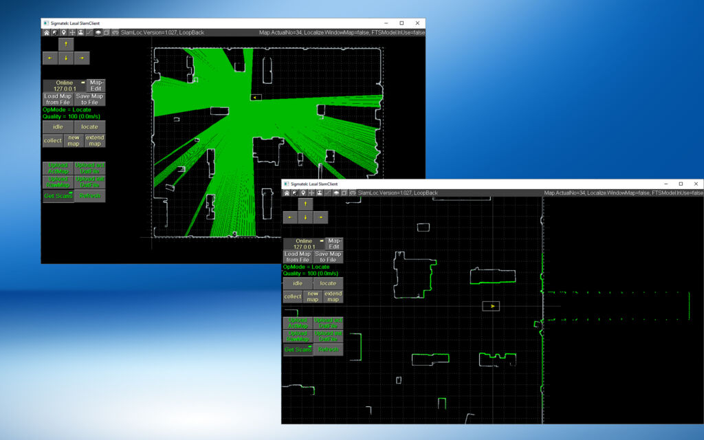 Die Echtzeit-Verortungssoftware SlamLoc von Sigmatek soll die Art und Weise, wie FTS und AMR bei konturbasierter Navigation mit Veränderungen ihrer Umgebung umgehen, verändern. Das System ist in wenigen Minuten betriebsbereit, kommt ohne vorinstallierte Pläne aus und ermittelt in Echtzeit – auch bei stark veränderten Konturen – eine auf ±10 mm und ±0,1° exakte Pose. Um die Software noch präziser und effizienter zu gestalten, wurden drei neue Features implementiert: Mit Freestyle Localize schafft das System eine Lokalisierung ohne vorher erstellte Karte, indem es die Umgebung in Echtzeit scannt und analysiert. Es erlaubt daher in Reichweite des Scanners eine flexible Navigation. Durch die Funktion Trailer Find kann sich ein FTS/AMR in einer Lagerhalle zum offenen Gate bewegen und den dort befindlichen Lastwagen-Anhänger lokalisieren und vermessen – auch wenn sich dieser typischerweise außerhalb der vordefinierten Karte befindet. Um eine bestmögliche Be- oder Entladung zu garantieren, ist es mit Hilfe von Freestyle Localize möglich, dass sich das Fahrzeug exakt im Hänger verortet und dementsprechend agiert. Dank Scanner Switch ist SlamLoc in der Lage, während des laufenden Betriebs auf einen anderen Scanner umzuschalten. Wird ein Scanner – z.B. durch eine Ladung – verdeckt, kann auf einen anderen (zusätzlich montierten) Scanner umgeschaltet werden – ohne, dass das Fahrzeug dafür stoppen oder stehen muss. Das spart Brems- und Beschleunigungsvorgang, was wiederum für eine längere Akku-Laufzeit sorgt.
