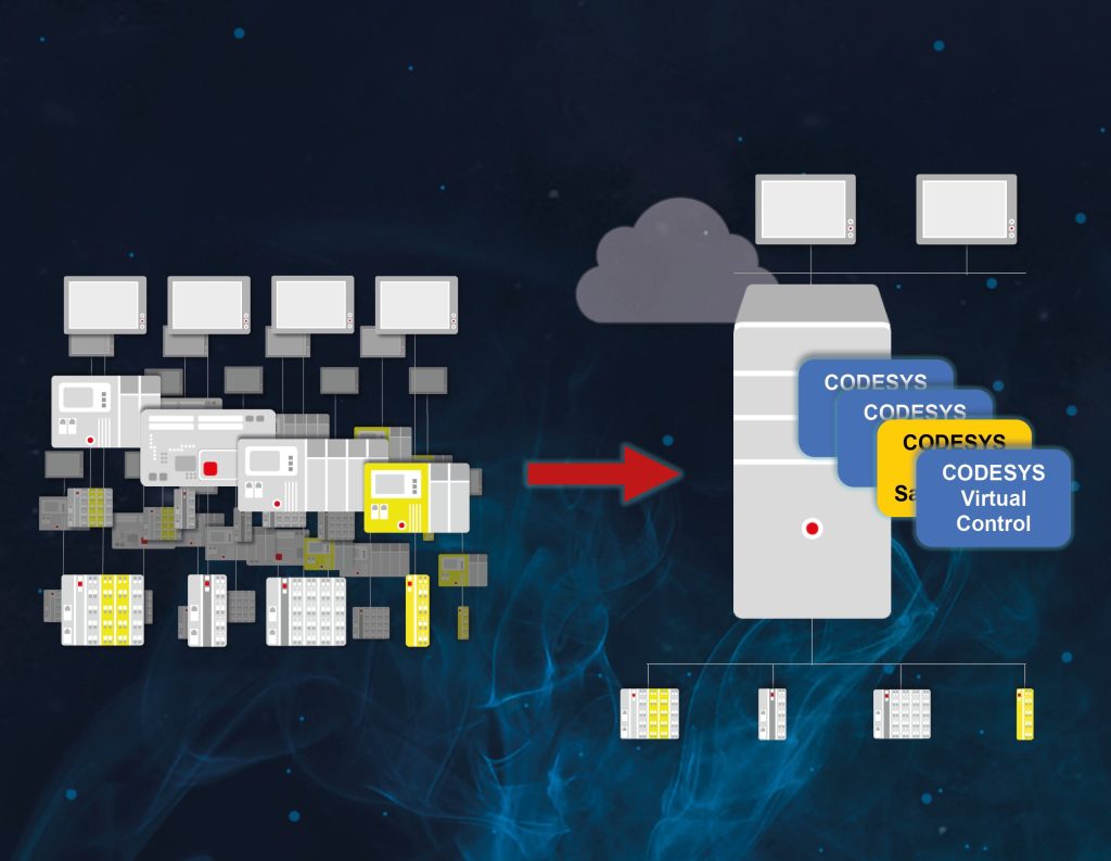 Fazit: Zunächst ist es eine betriebswirtschaftliche Betrachtung, in welchen Anwendungen virtuelle Steuerungen sinnvoll sind. In jedem Fall ergeben sich jedoch aufgrund der Virtualisierung neue Möglichkeiten für Anwender und Betreiber von komplexen Steuerungssystemen. Daher werden sich virtuelle Steuerungen ganz sicher bald neben physikalischen Steuerungen und Soft-SPSen etablieren.
