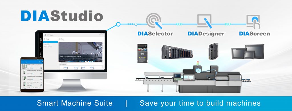 Mit der Engineering-Umgebung DiaStudio will Delta Electronics Anwendern eine effiziente Entwicklung von Maschinensystemen ermöglichen – von der Produktauswahl über die Programmierung bis hin zum Export auf eine einheitliche Plattform. Mit der Anwendung DiaSelector wählen Benutzer die benötigten Komponenten des Maschinensystems aus. Der DiaDesigner fasst alles zusammen, sobald einige Zwischenschritte im Engineering-Prozess abgeschlossen sind. Mit DiaScreen können Benutzer schließlich Tags zwischen SPS und HMIs oder Texttafeln austauschen, um die Bedienoberfläche zu vervollständigen.