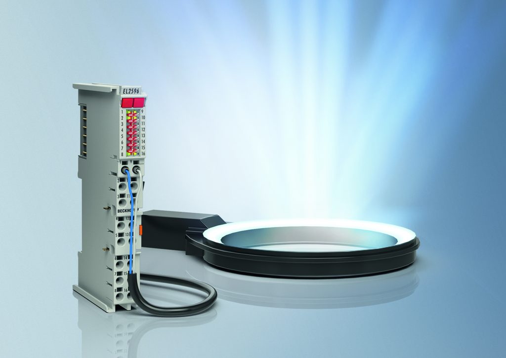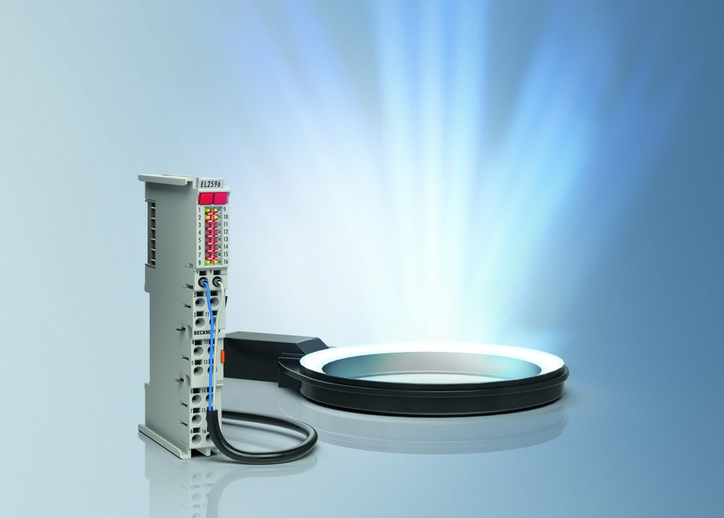 Die 1-Kanal-LED-Ansteuerungsklemmen der Serie EL2596 wurden speziell für die Steuerung von Vision-Beleuchtungen über Ethercat entwickelt und ermöglichen Blitzbeleuchtungen mit Pulsen ab 50µs. Die Klemmen enthalten ein flexibles Netzteil, womit Anwendungen von Dauerlicht bis hin zu kurzen Lichtpulsen im kHz-Bereich möglich sind. Jeder Einzelblitz lässt sich per Distributed Clock/Timestamp von der Steuerung kontrolliert auslösen. „Man kann eine Kamera mit einer Mikrosekunden-Genauigkeit auslösen und die Beleuchtung über unsere Klemme entsprechend genau triggern. Somit ist sichergestellt, dass man zu jedem Trigger-Ereignis die genaue Position z.B. eines Produkts auf einem Förderband erreicht. Synchronität ist letztendlich das ausschlaggebende Feature, um Bildverarbeitung integriert in der SPS-Runtime zu nutzen“, hebt Papenfort die Vorteile hervor. Die Klemmen verfügen über eine schnelle Strom-/Spannungsregelung, sodass auch Zeilenkameras eine konstante Beleuchtung erhalten. Die umfangreiche Echtzeitdiagnose, z.B. von Ein- und Ausgangsstrom/-spannung, erlaubt eine detaillierte Kontrolle der LED-Lichtstärke. Somit sind auch Überblitz-Anwendungen mit kurzen Hochstrompulsen möglich. Ein weiterer Vorteil der Klemme ist die hohe Takt-Synchronität, da sie im gleichen Takt wie die Kameraaufnahme bzw. die Roboterbewegung getriggert wird. „Zudem ist die EL2596 deutlich kostengünstiger als vergleichbare Geräte am Markt“, verrät Papenfort.