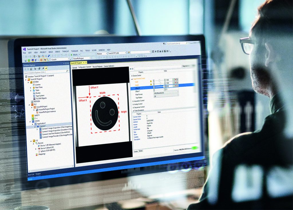 „Twincat Vision ist vollständig in unserer SPS integriert“, so Dr. Josef Papenfort, Senior Produktmanager Twincat bei Beckhoff Automation. In der SPS-Bibliothek existieren über 500 Bausteine, mit denen der SPS-Programmierer, aber auch der Vision-Anwender, seine Applikationen direkt in der SPS realisieren kann. Zudem ist die Konfiguration der Kameras in der Entwicklungsumgebung – die auf Visual Studio von Microsoft basiert – integriert. Auch im Twincat HMI gibt es schon erste Controls zur Anzeige von Bildern aus Twincat Vision, weitere Controls sind bereits in der Entwicklung. Zukünftig sollen nicht nur Bilder im HMI angezeigt werden, sondern z.B. auch die Konfiguration von Parametern über das Twincat HMI möglich sein. Dadurch kann der Endkunde auf seine Vision-Applikationen zugreifen, um sie an die jeweiligen Bedingungen anzupassen. Zudem lassen sich Kameraparameter online durch SPS-Bausteine modifizieren, ohne nochmals in das Konfigurationstool eingreifen zu müssen. Während bei der Bildverarbeitung häufig C++ oder graphische Programmiersprachen zum Einsatz kommen, nutzt das aus der SPS-Welt kommende Twincat Vision auch Programmiersprachen, wie z.B. Structured Text (ST). Wer graphisch programmieren möchte, kann eine Vision-Applikation daher auch in SFC (Sequential Function Chart) programmieren. Hinsichtlich der Komplexität ist die Parametrierung einer Kamera für eine Vision-Anwendung durchaus vergleichbar mit der Parametrierung eines (Servo-)Antriebs. Bei beiden gibt es bis zu mehrere hundert mögliche Parameter. Somit sind bzgl. Konfiguration und Programmierung kaum noch Unterschiede zwischen der Realisierung einer Bildverarbeitungs- und einer Motion-Control-Applikation vorhanden.
