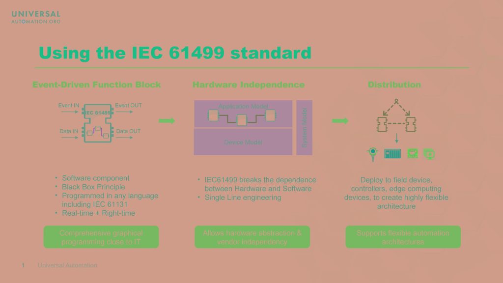 Zu den Mitgliedern der neuen UniversalAutomation.Org zählen Industrieunternehmen, OEMs, Hersteller, Universitäten und Start-Ups. Um die Automatisierung entsprechend zeitgemäßer Anforderungen neu auszurichten, setzen diese ab sofort auf die Referenzimplementierung einer IEC61499-basierten Steuerungs-Runtime. Diese Runtime steht allen Mitgliedern frei zur Verfügung und bildet die Grundlage für ein einfacheres Engineering sowie für deutlich flexiblere und effizientere Anlagen. Dass die bereits 2005 veröffentlichte Norm IEC61499 nun durch eine so breite, branchenübergreifende Allianz aufgegriffen und unterstützt wird, ist ein Novum in der Automatisierungstechnik.