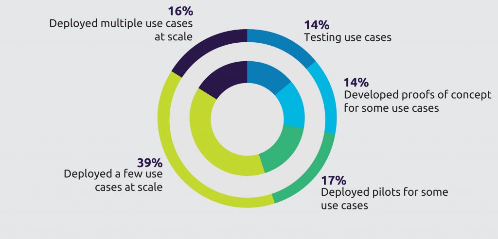 Weniger als ein Fünftel (16%) der Unternehmen mit Automatisierungsprojekten gehen bislang über den Status von einzelnen Pilotanwendungen hinaus und setzen sie in mehrfacher Ausprägung über Geschäftsbereiche, Funktionsebenen oder auch Ländergrenzen hinweg ein. Das ist das Ergebnis des Reports ‚Reshaping the future: Unlocking automation’s untapped value‘, für den über 700 Führungskräfte befragt wurden, die sich mit der Automatisierung beschäftigen. Der Schwerpunkt liegt eher auf operativen Verbesserungen als auf langfristigen, strategischen Wachstumsinitiativen: 40% der Unternehmen zielen vor allem auf qualitative Ergebnisse ab, nur 23% auf zusätzlichen Umsatz. Insgesamt rund ein Drittel der untersuchten Organisationen konzentrieren sich bei ihren Aktivitäten auf solche, die einfach zu implementieren sind, aber einen hohen Mehrwert versprechen. Betrachtet man die Ergebnisse der Studie nach Branchen, zeigt sich, dass die Automobilindustrie am häufigsten umfangreichere Automatisierungsansätze vorweisen kann: Jedes vierte Unternehmen geht über den Pilotbetrieb hinaus und hat eine ganze Reihe von Anwendungen im breiten Einsatz. Auf den weiteren Plätzen finden sich andere industrielle Fertiger und der Handel mit jeweils 15%. Bei den Ländern liegen die USA mit einigem Abstand vorne: 26% der Unternehmen, die sich mit Automatisierung beschäftigen, tun es dort in erweiterter Form; es folgen Frankreich mit 21% und Deutschland mit 17%.