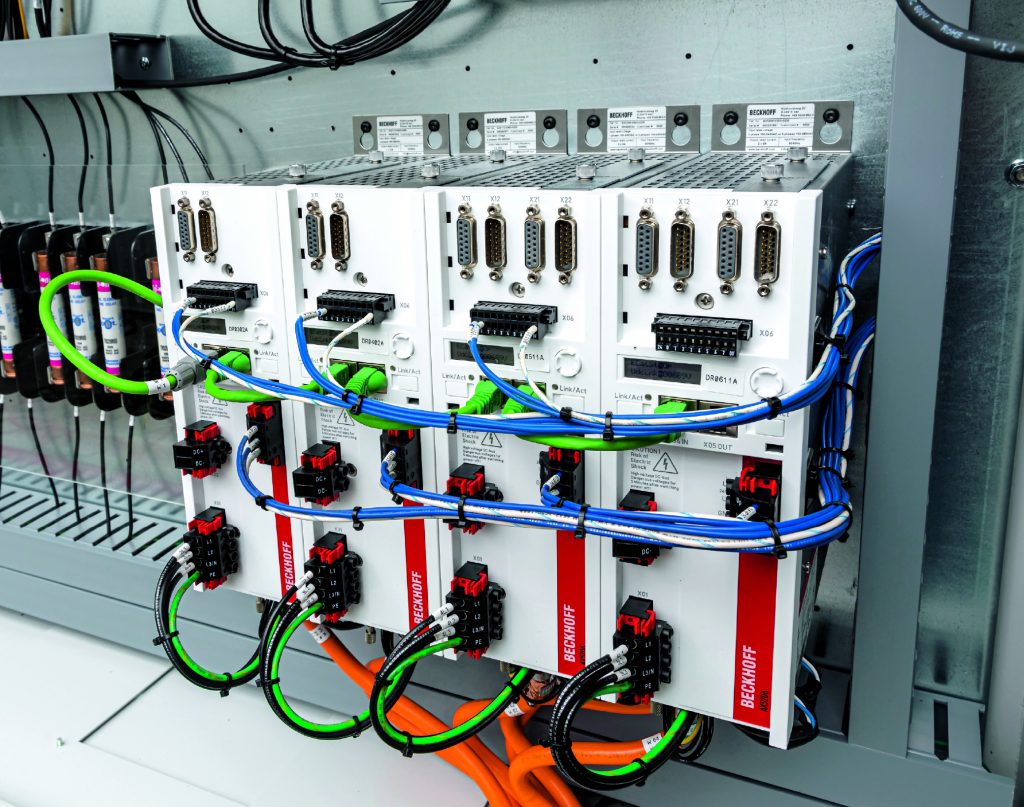 Für die 28 Bewegungsachsen der Standardkonfiguration kommen neben den Servoverstärkern der Serie AX5000 die leistungsstarken Servomotoren der Serie AM8000 zum Einsatz. Sie werden über die Einkabeltechnik OCT kostensparend mit Steuerungssignalen und Leistung versorgt. Mit den Twinsafe-Optionskarten AX5805 implementieren die Antriebe außerdem antriebsintegrierte Sicherheitsfunktionen wie sicherer Betriebshalt (SOS) und Stopp (SS1, SS2), sichere Geschwindigkeit (SSR, SLS, SSM), sicher begrenzte Position (SLP) sowie sichere Beschleunigung (SMA, SAR) und Drehrichtung (SDlp, SDln). Digitale Souveränität in der Automation: Fraunhofer IOSB-INA entwickelt einen KI-Assistenten für die SPS-Programmierung. ‣ weiterlesen