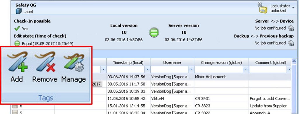 Tagging von Komponenten um zusätzliche Informationen in versiondog. – Bild: AUVESY GmbH