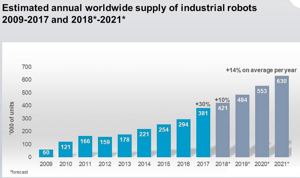 World Robotics Report: Roboterabsatz in fünf Jahren verdoppelt