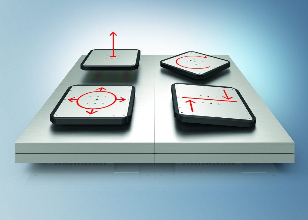 Das Konzept des Systems ist denkbar einfach: Wie ein fliegender Teppich schweben die Transportelemente (Mover) auf einem Magnetfeld über einer aus Planarkacheln bestehenden Fläche und lassen sich dort in beliebige Richtungen lenken. Dabei sind die Mover ruck- und berührungsfrei mit bis zu 4m/s Geschwindigkeit, 2g Beschleunigung und 50µm Positionierwiederholgenauigkeit zweidimensional verfahrbar, und das geräuschlos und ohne Abrieb. Basis des XPlanar-Systems sind die in beliebigen und damit exakt anwendungsorientierten Geometrien anreihbaren 240x240mm großen Planarkacheln. Diese beinhalten die gesamte Elektronik und die Ethercat-G-Kommunikation. Über ihnen schwebt – ermöglicht durch integrierte Permanentmagneten – eine frei wählbare Anzahl an Planarmovern. Dabei sind die Mover nicht nur waagerecht, sondern auch senkrecht und sogar kopfüber einsetzbar. Zur Auswahl stehen drei quadratische Planarmovertypen mit Kantenmaßen von 95, 155 oder 275mm sowie ein rechteckiger Long Mover mit einer Abmessung 155x275mm. Die sich daraus ergebenenen Nutzlasten variieren zwischen 0,4 und 6kg.