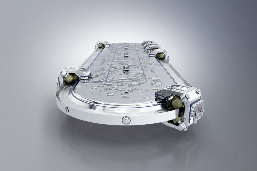 In Abhängigkeit der Applikationsanforderungen werden passende Beckhoff-Edelstahl-Führungsschienen mit geringem Montageaufwand direkt auf den Motormodulen angebracht. Dieser Aufbau lässt sich mit zwei Hygienic-Design-Movertypen befahren: ein Edelstahl-Mover für hygienisch besonders anspruchsvolle Umgebungsbedingungen und ein Mover aus eloxiertem Aluminium, der im Vergleich zur Edelstahlvariante größere Nutzlasten bei höheren Dynamiken transportieren kann.