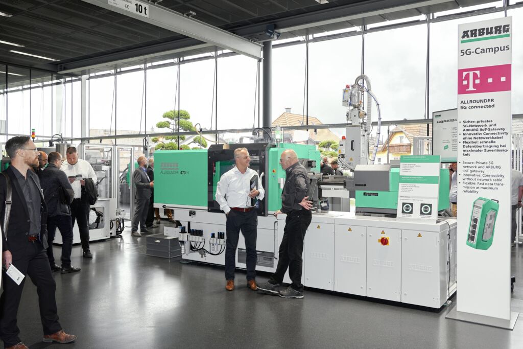Arburg hat in seiner Zentrale ein 5G-Campus-Netz der Deutschen Telekom in Betrieb genommen. Damit erprobt der Spritzgießmaschinen-Hersteller zukünftig Anwendungen für die eigene Produktion. In seinem Kundencenter präsentiert Arburg bereits das Potenzial des Mobilfunkstandards 5G für die vernetzte Fertigung. Dort können Industrie-Kunden unterschiedlichster kunststoffverarbeitender Branchen, wie der Automobil- und Verpackungsindustrie oder der Medizintechnik, digitale Fertigungs-Konzepte testen. Die Telekom hat das Arburg Kundencenter hierzu mit acht speziellen Inhouse-Antennen ausgestattet, welche die 2.100m² große Fläche mit 5G versorgen.